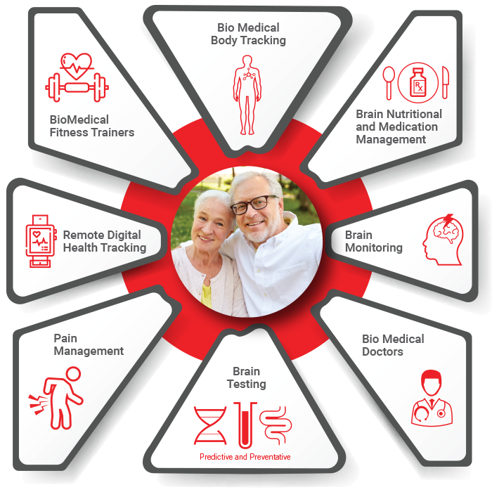 We integrate you into our unique Biomedical Fitness Ecosystem, where your healthcare data, test results, and overall well-being-inside and out-are continuously monitored.